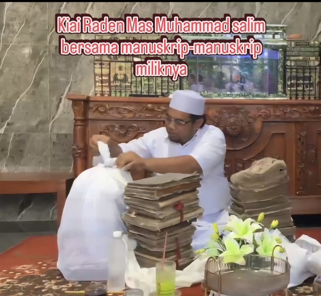 Kiai Raden Mas Muhammad Salim bin Kiai Raden Mas Muhammad Mughni (Kiai Salim) yang beralamat di Pondok pesantren Bumi Sholawat Kanjeng sunan Ampel Jl Arda menawi rt06/07 Rawajaya bantarsari Cilacap –pemilik ratusan manuskrip peninggalan Walisongo terutama Sunan Ampel Ali Rahmatullah– bersedia memperlihatkan kepada penulis dan rombongan (termausk Raden Tubagus Mogy Nurfadil) beberapa contoh manuskrip peninggalan leluhurnya tersebut (Rabu, 15 April 2026) di kediamannya. Contoh manuskrip yang diperlihatkan tersebut terdiri dari tiga buntalan besar. Buntalan itu terbuat dari kain putih. Satu buntalan itu terdiri sekitar 17 manuskrip. Jadi tiga buntalan itu kira-kira terdiri dari 50 manuskrip. Selain tiga buntalan besar itu, Kiai Salim memperlihatkan dalam video peti-peti berupa manuskrip serupa.